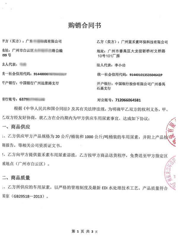 廣州藍禾素環(huán)??萍加邢薰荆且患覍I(yè)生產(chǎn)車用尿素溶液,尿素脫硝劑氮氧化物還原劑